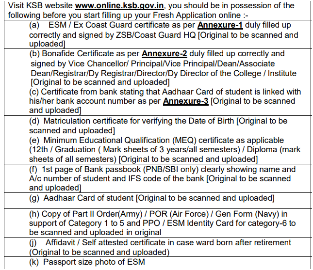 - The scheme is available only for dependent wards or widows of Ex-servicemen and Ex-Coast Guard personnel.